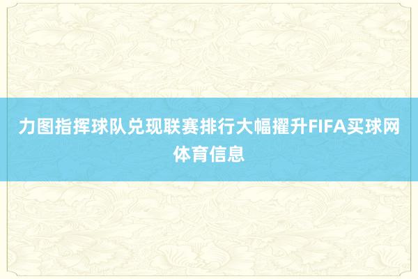 力图指挥球队兑现联赛排行大幅擢升FIFA买球网体育信息
