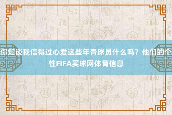 你知谈我信得过心爱这些年青球员什么吗?他们的个性FIFA买球网体育信息