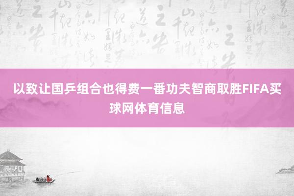 以致让国乒组合也得费一番功夫智商取胜FIFA买球网体育信息