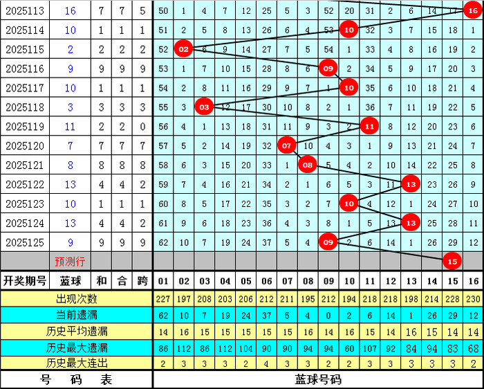 蓝球分析:前5期蓝球号码分裂开出:08、13、10、13、09,其中奇数蓝球开出3期,发达相对较热,本期看趣味数蓝球不竭出现,随和蓝球号码15。