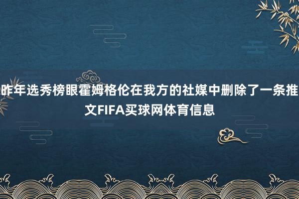 昨年选秀榜眼霍姆格伦在我方的社媒中删除了一条推文FIFA买球网体育信息