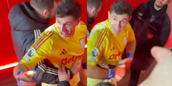 体育录像/图片 尽管曾遵守阿森纳十余年,与这家北伦敦俱乐部有着深厚渊源,但阿根廷国门埃米利亚诺·马丁内斯在球队客场1-4惨败给老东家后,却与看台上的阿森纳球迷爆发强烈辱骂,处所一度垂死。 这场在酋长球场进行的比赛,闭幕了阿斯顿维拉此前豪取的11连胜。对马丁内斯而言,这不仅是一场苦涩的失利,更因赛后与球迷的突破而变得稀奇疾苦。 终场哨响后,几名阿森纳球迷朝这位前自家门将大声嘲讽。据现场视频显现,在复返更衣室途中,心思感奋的马丁内斯与看台上的扶持者发生讲话交锋,显得极为盛怒。有目睹球迷描写他“意见