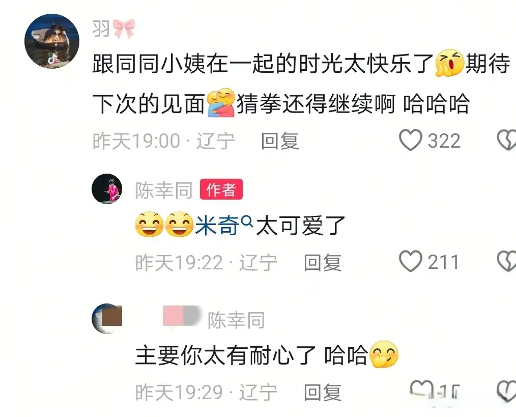 刚刚看了一下,小米奇才4周岁,关联词乒乓球看着打着可以,亦然一拍一拍打出来的,他应该很可爱小白球吧。陈幸同更新抖音后,应该是米奇的姆妈来留言:“跟同同小姨在一齐的时光太甘愿了,期待下次的碰面[抱抱你]豁拳还得连续啊,哈哈哈。”